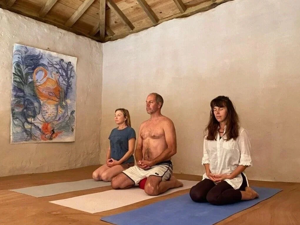 Creative ideas often surface when we give ourselves space to slow down and listen inwardly. Mindfulness helps create that space, and yoga is one of the ways we support this process. When there’s interest, we come together for relaxed group sessions in a dedicated space in the rustic 18th-century tower above the painting studio. It’s a quiet room that feels slightly apart from the rest of the house, making it an easy space to unwind, focus and reconnect in.